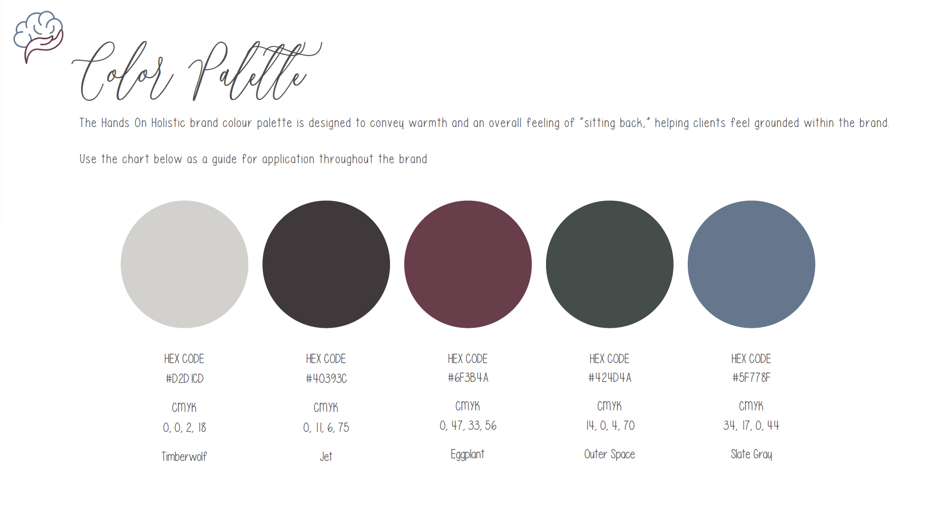 The guide included a soothing colour palette inspired by natural, earthy tones to evoke calmness and trust, while the typography was chosen to convey both professionalism and warmth.